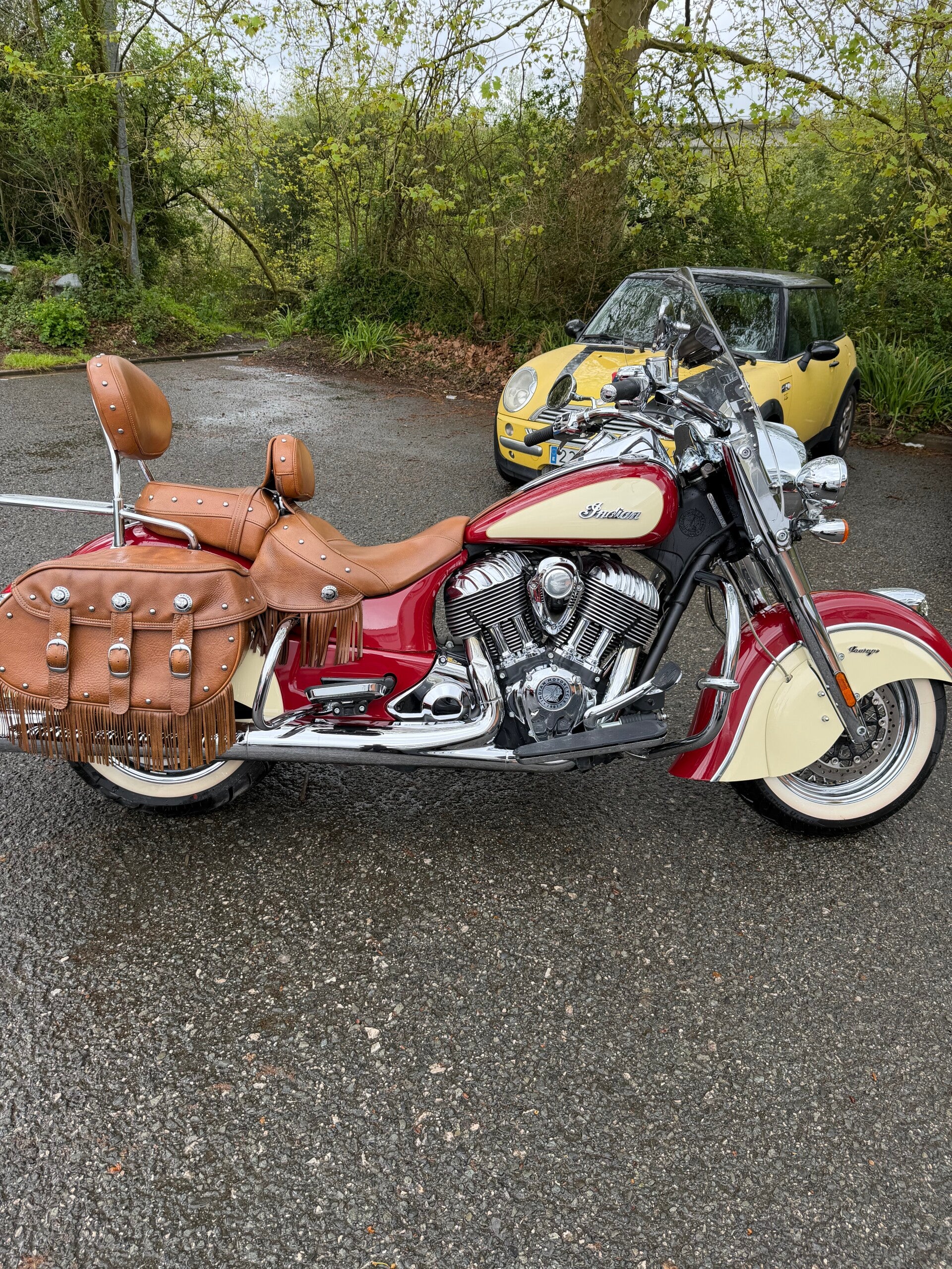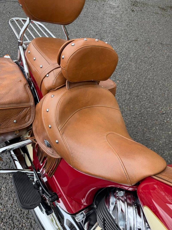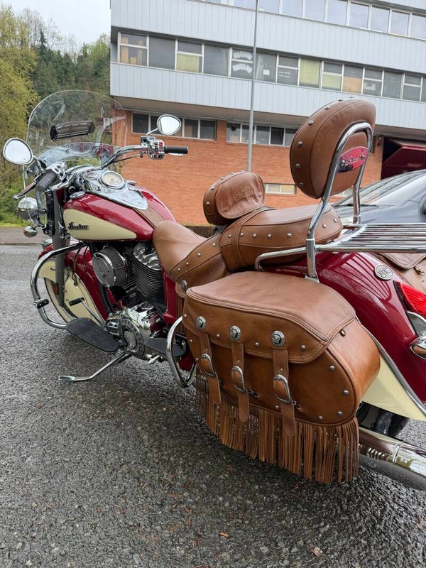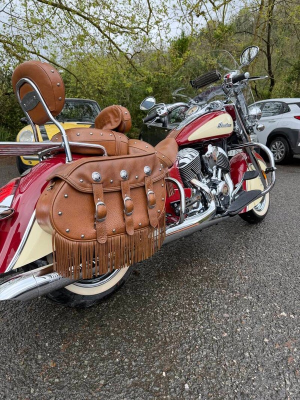 • Maletas Laterales de Cuero: Originales Indian, con el icónico acabado de flecos y gran capacidad.